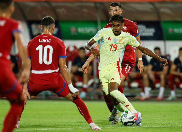罗德里缺席,苏维门迪接替了他的核心位置。西班牙尽量维持着高位控球,试图复制欧洲杯时的成功套路。不过左侧的尼科·威廉斯自新赛季开赛以来便状态不佳,西班牙两翼只有拉明·亚马尔一侧起飞。不过他和卡瓦哈尔之间出现了较大空隙,仅凭单骑闯关很难突破塞尔维亚的“盾阵”。几次被断球后,亚马尔情绪上来用危险的铲球放倒对手,因此领了黄牌。在场的塞尔维亚球员没有太计较,但口头告诫小朋友不要冲动。因为这种动作不但会伤到对方,也会导致自己受伤。